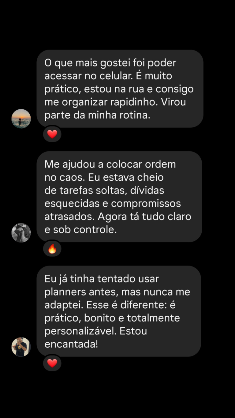 O que mudou minha vida foi encontrar um método simples para organizar meus hábitos, controlar meu dinheiro e planejar minhas semanas com clareza.